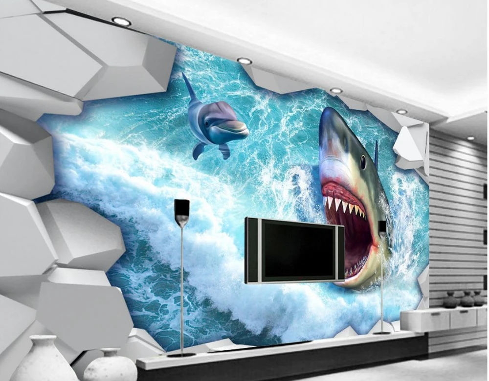 القرش مخصصة 3d صور ورق الحائط ورق الحائط 3d الحديثة ل غرفة المعيشة الجداريات Papel Parede جدارية خلفية 3d Wallpaper Mural Wallpaperwallpaper Modern Aliexpress