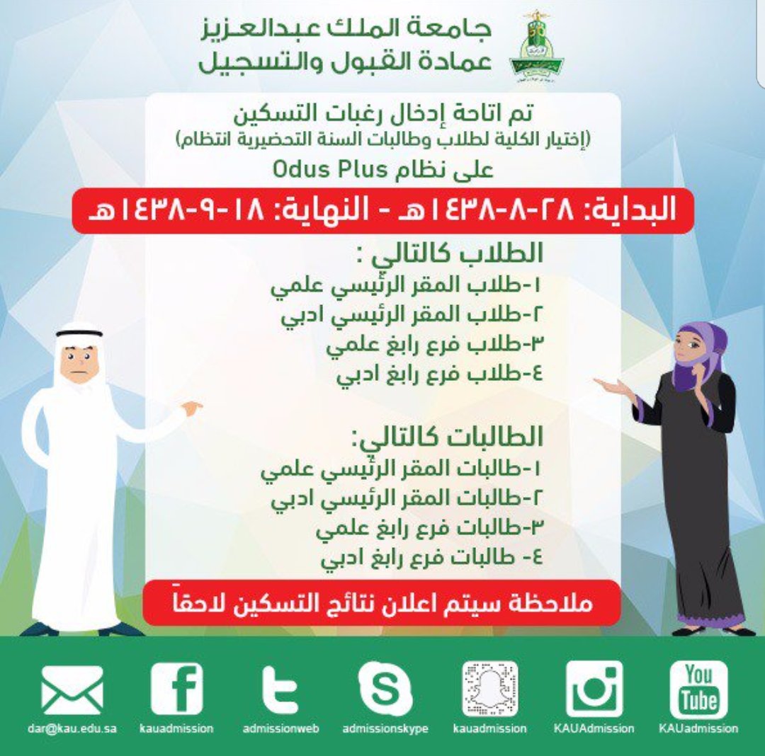 سكاو Twitterissa صدرت نتائج التسكين لطلاب و طالبات دفعة تحضيري 17 و ماقبل على الاودس نتمنى لكم التوفيق و النجاح سكاو جامعة الملك عبدالعزيز