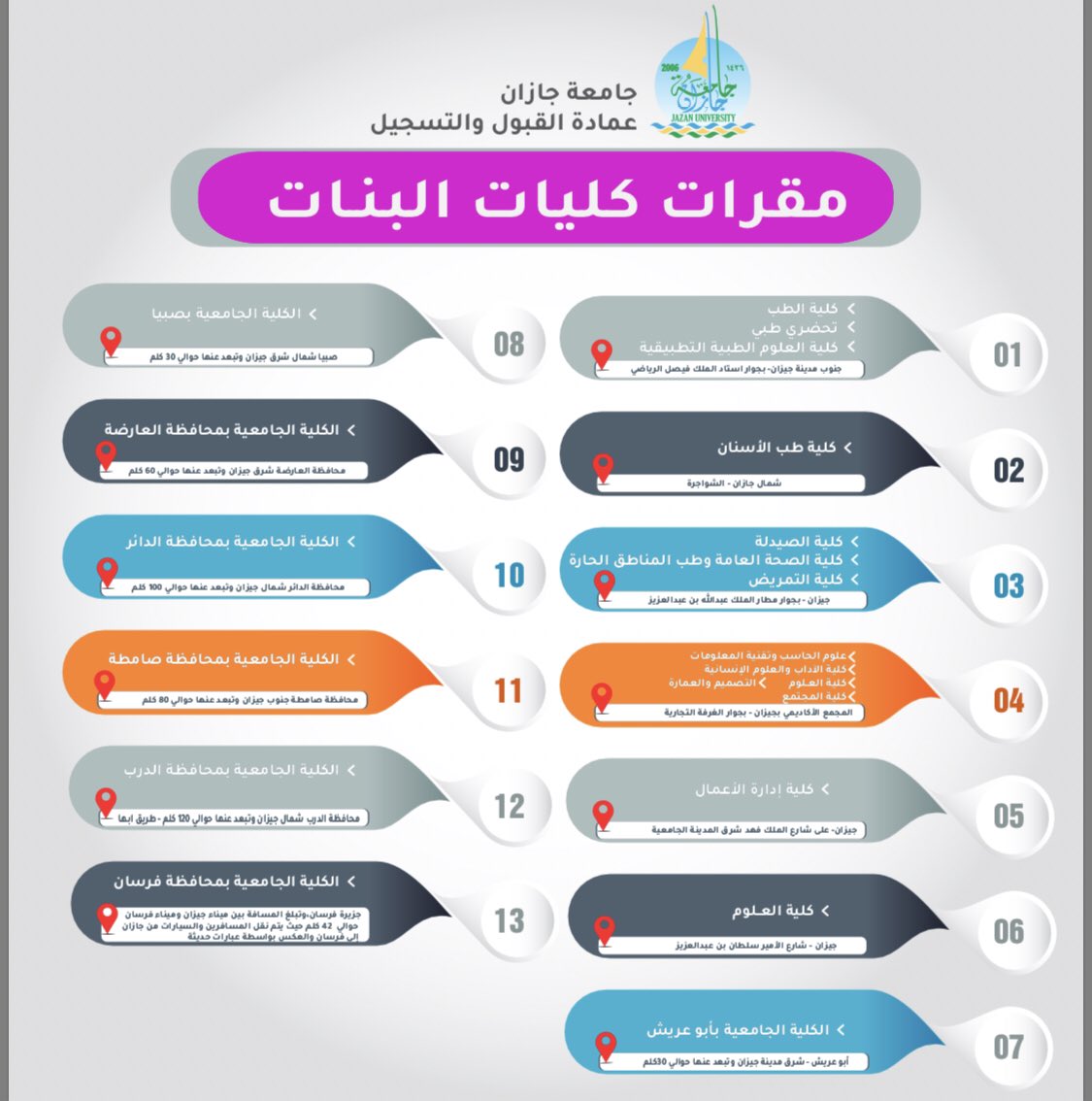 جامعة جازان On Twitter التخصصات المتاحة في الكليات التالية الآداب والعلوم الإنسانية التربية الشريعة الكلية الجامعية بصبيا الكلية الجامعية بأبي عريش Https T Co Cfmjcu110e