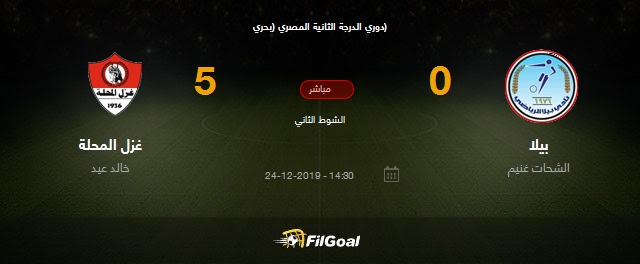Filgoal نتيجة مباراة فريقي بيلا و غزل المحلة في بطولة دوري الدرجة الثانية المصري بحري الاسبوع 10