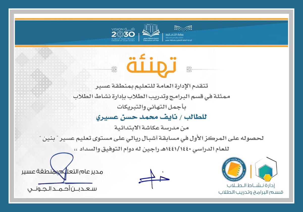 إدارة تعليم عسير On Twitter صدر قرار مدير عام التعليم أ جلوي آل كركمان بتكليف أ عبدالله بن عزيز مديرا لإدارة التخطيط المدرسي تعليم عسير