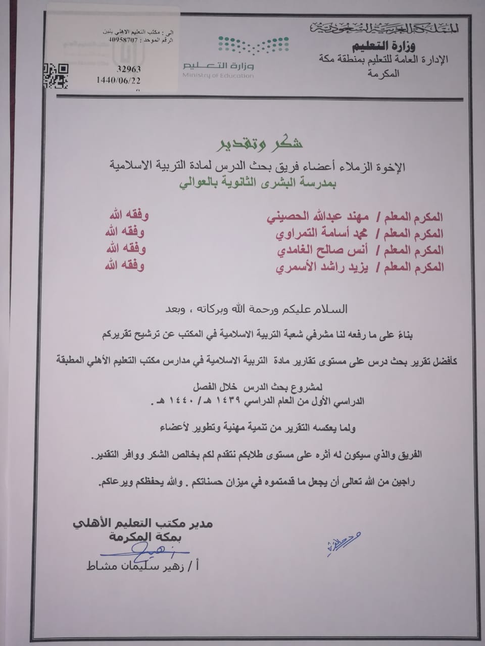 ثانوية البشرى الأهلية بالعوالي On Twitter ثانوية البشرى انجازات تميز وإبداع مجموعة من خطابات الشكر التي وجهت لإدارة ثانوية البشرى ومعلمي المدرسة الذين أبدعوا في تنفيذ مشروع بحث الدرس وذلك من قبل الإدارة العامة للتعليم