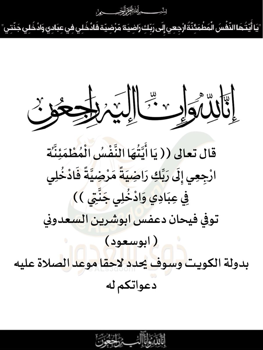 عزي ز Op Twitter توفي اليوم والدي دعواتكم له بالرحمة والمغفرة وانا لله وانا اليه راجعون