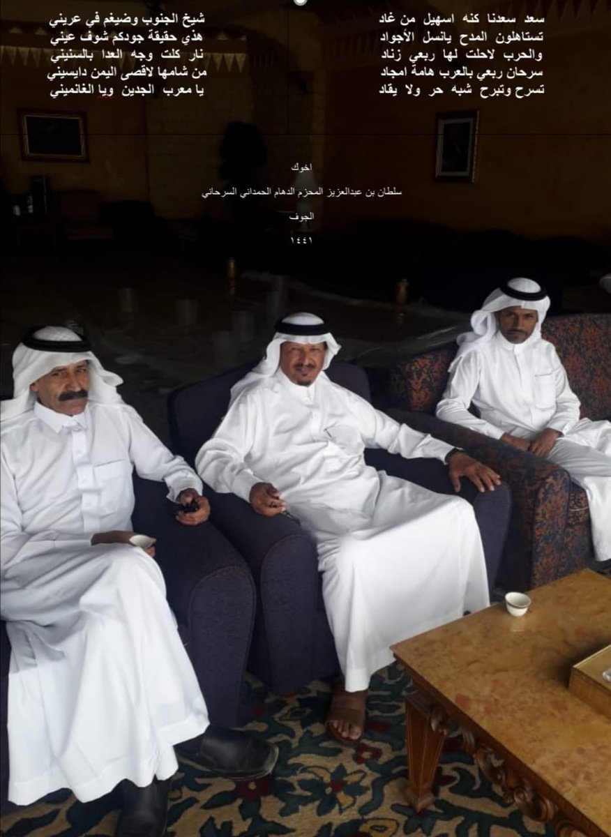 ملتقى قبيلة السرحان على تويتر الأستاذ عبدالعزيز بن عبدالله الدهام السرحاني على يمين الشيخ سعد بن عبدالله آل ثابت السرحاني شيخ آل سرحان بالجنوب وسط الصورة واقصى اليمين الأستاذ علي