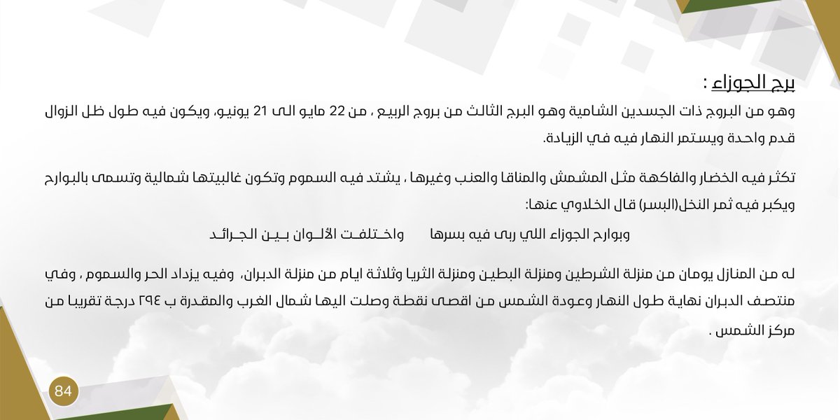 المرصد الفلكي Pa Twitter من المعلومات الفلكية بتقويم مرصد جامعة المجمعة الفلكي بحوطة سدير صفات برج الجوزاء وهو من البروج ذات الجسدين ويبدأ من 22 مايو الى 21 يونيو يكون فيه طول