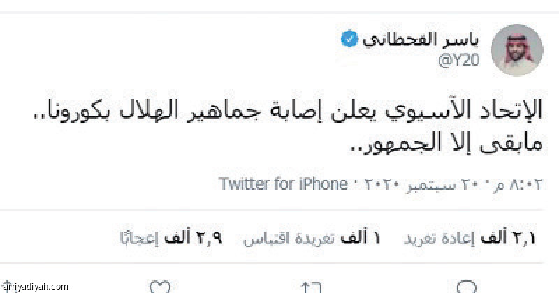 تغريدة القحطاني التفاعل الأكبر صحيفة الرياضية