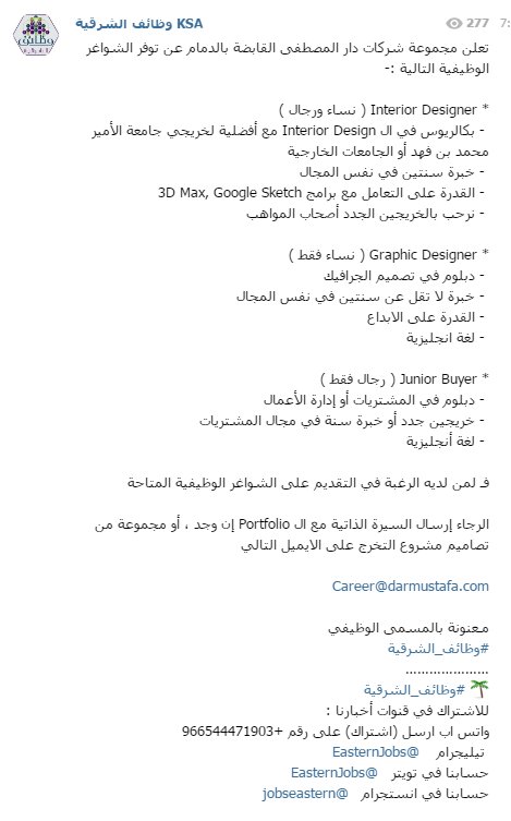 وظائف الشرقية Ksa On Twitter وظائف الشرقية شركة دار المصطفى القابضة الدمام Interior Graphic Designer Junior Buyer Career Darmustafa Com
