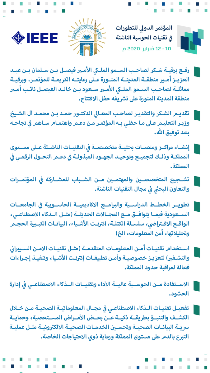 الجامعة الإسلامية على تويتر البيان الختامي للمؤتمر الدولي للتطورات في تقنيات الحوسبة الناشئة الجامعة الإسلامية