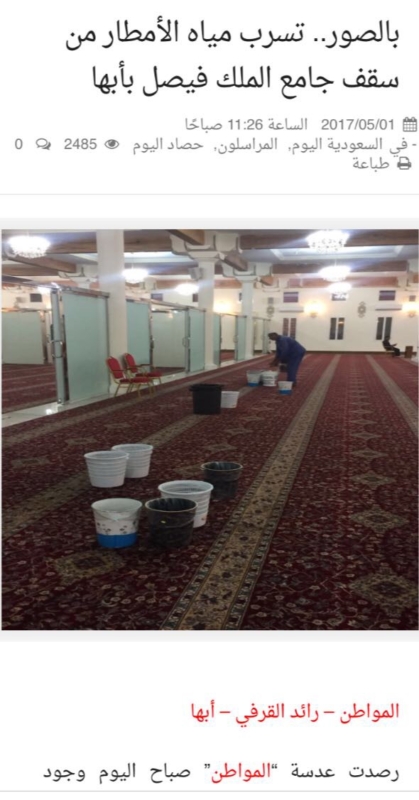 بالصور تسرب مياه الأمطار من سقف جامع الملك فيصل بأبها صحيفة المواطن الإلكترونية