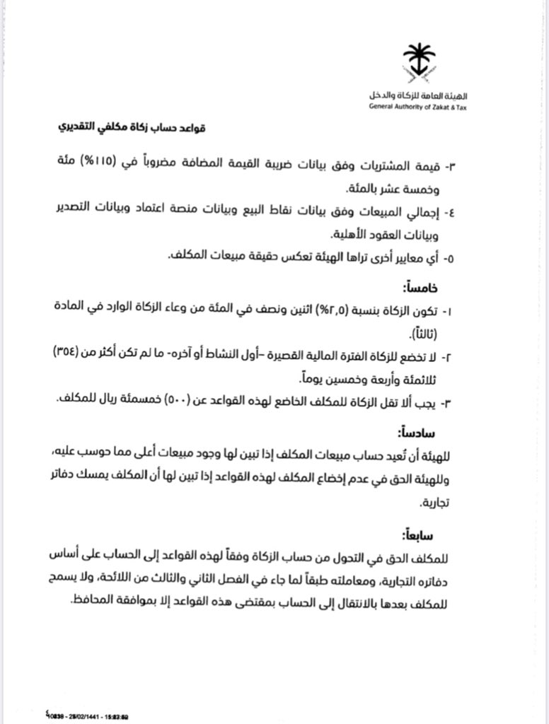 المستشار القانوني On Twitter تنظيم جديد الزكاة والدخل صدر تنظيم جديد من هيئة الزكاة والدخل يحدد قواعد حساب زكاة مكلفي التقديري
