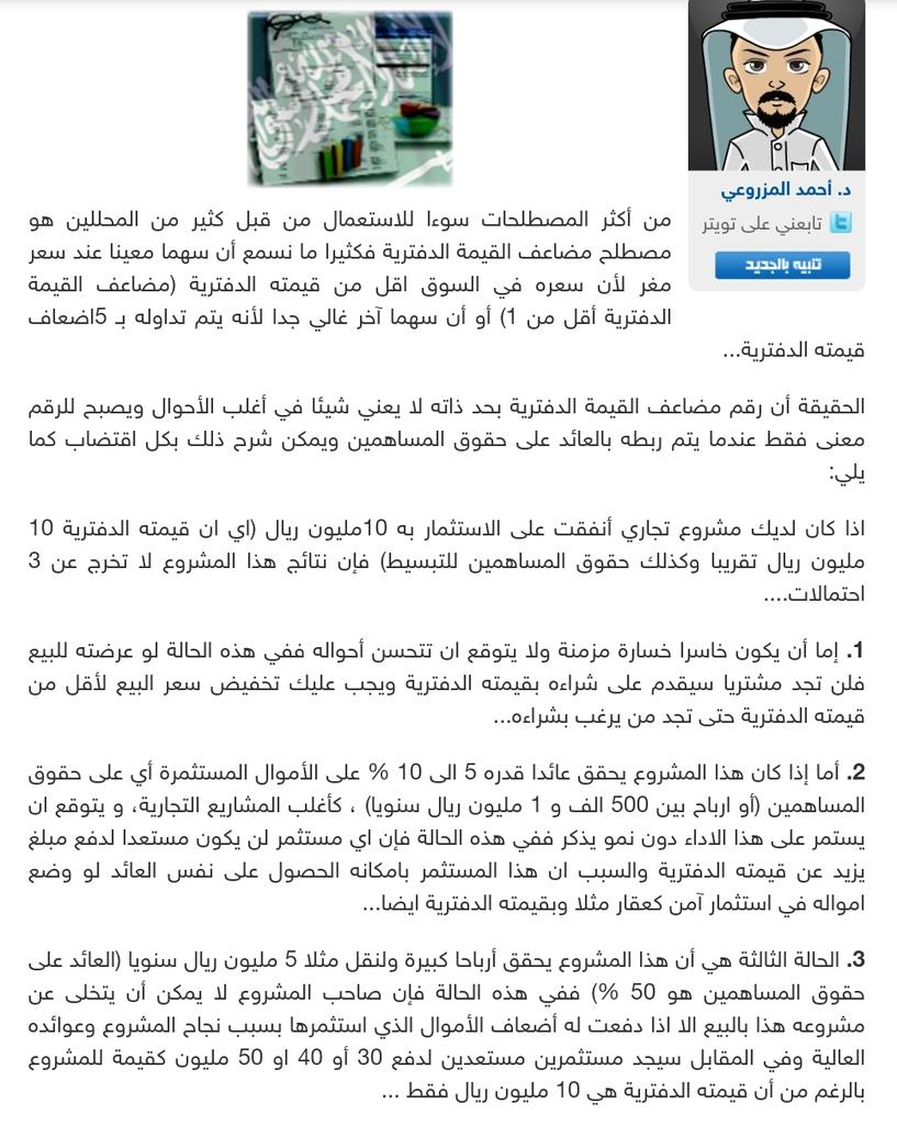 Ahmad Alsabban أحمد الصبان On Twitter عندما يكون مضاعف القيمة الدفترية اقل من ١ فهذا معناه ان سعر السهم اقل من قيمته الدفترية او ان قيمة اسهم الشركة اقل من صافي