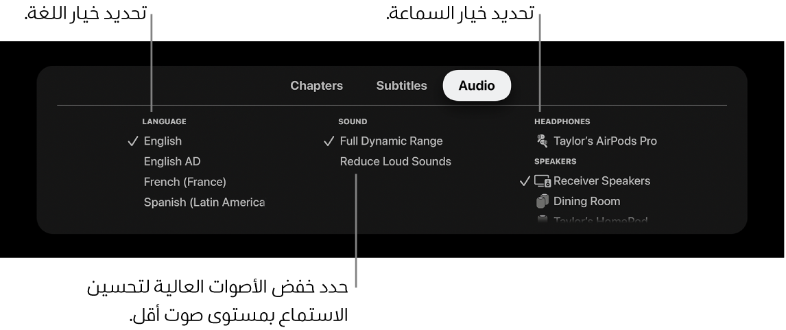 ضبط إعدادات الفيديو والصوت على Apple Tv الدعم Apple