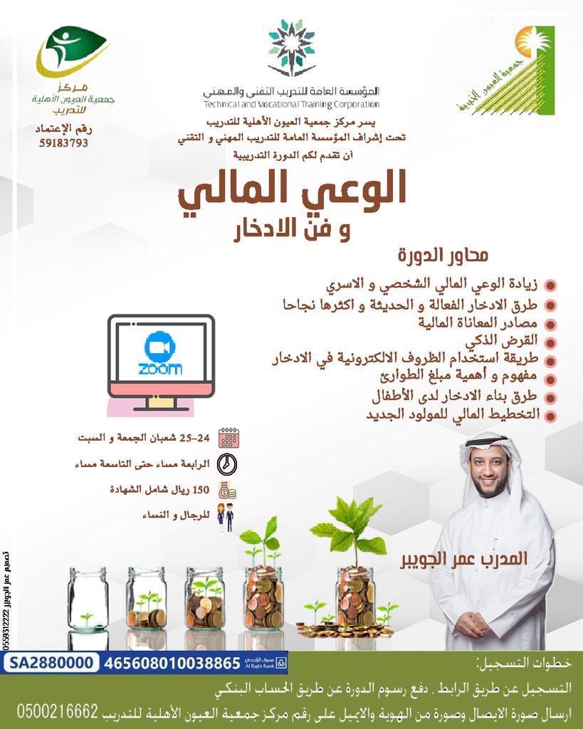 العيون الخيرية وليسعك بيتك On Twitter مركز جمعية العيون الأهلية يقدم دورة بعنوان الوعي المالي وفن الإدخار للمدرب أ عمر الجويبر شهادة معتمدة للرجال والنساء أون لاين ٤ ساعات تدريبية