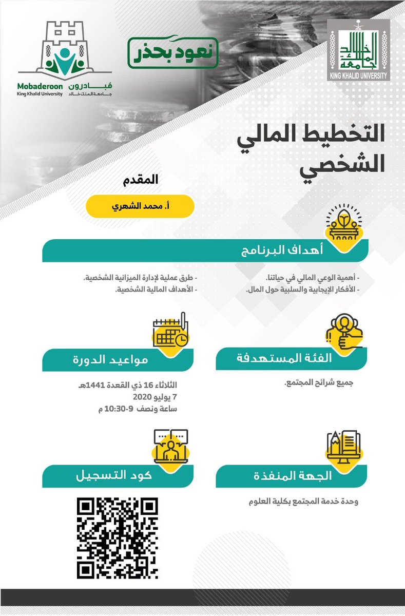 جامعة الملك خالد در توییتر التخطيط المالي الشخصي دورة تدريبية تقدم لأفراد المجتمع من الجنسين مجان ا وعن ب عد تنفذها كلية العلوم بـ جامعة الملك خالد ممثلة في وحدة خدمة المجتمع بالكلية ضمن مشروع مبادرون Kku